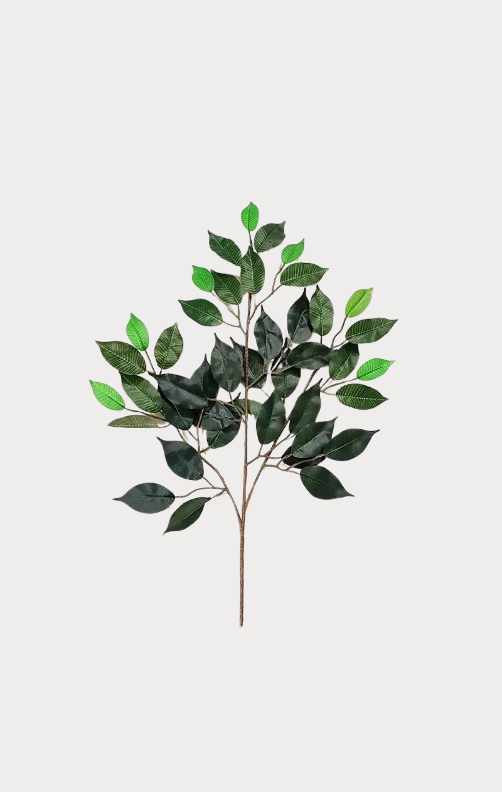 Ramo di Ficus montabile su tronco naturale Mansanisi (Ø 2–14 cm), con ramificazioni lineari e tonalità calde tra beige e ocra. Ideale per la creazione di piante extra-size fino a 5,50 metri di altezza, scenografiche e imponenti.